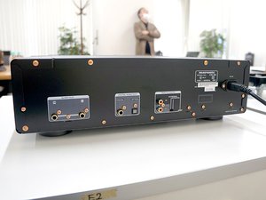 出力端子には、アナログアンバランス、同軸デジタル、光デジタル、ヘッドホン出力を各1系統装備。L/R独立タイプのアナログ出力端子を余裕のある間隔で配置し、大型のRCAプラグを使用したケーブルも容易に着脱できるようにも配慮している。また、アナログ出力端子と、同軸デジタル出力端子には経年変化や信号の劣化を防止する金メッキ加工を施している。
