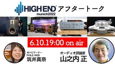 5月19日より3年ぶりに開催されたミュンヘン・ハイエンドは無事に閉幕しました。PHILEWEBのYouTubeチャンネルにて生放送でお届けしている「PHILEWEB TV」では、ミュンヘン・ハイエンドに毎回欠かさず訪れているオーディオ評論家の山之内 正氏をお迎えして、「注目トピック総まとめ!」のアフタートークイベントをお送りいたします。