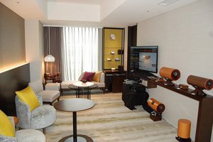ザ・ゲートホテル東京 by HULICでは、全館全室にエムズシステムの波動スピーカーが導入されている。164を数える全客室には、「Kagee(カゲエ)」をベースにしたオリジナルモデルを配置。気に入ればホテルで購入し、持ち帰ることもできる。そのほかにも、エントランスとなる4階のロビーラウンジ、バー、レストラン、さらに、オープンテラスにも波動スピーカーが設置されている。