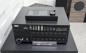 また、8K・22.2chの音声をフル・デコードして再生できるマルチチャンネルアンプ「PA-1853」が、この度初めて開発されたとのこと。仕切られた隣の空間では22.2ch対応チェアスピーカーも試聴展示されており、こちらは実際にPA-1853を使用して駆動している。