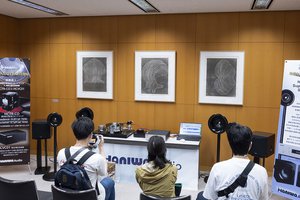 また再生装置には、0.2Ωと超低インピーダンスなカートリッジ「HCTR-CO」をはじめとした同社のアナログシステムを使用。カートリッジからスピーカーまで、全体的にユニークなオーディオ製品ということで多くの方がその音を確かめていた。
