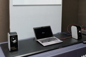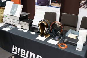 ヒビノは、AKGブランドのプロフェッショナル向けヘッドホンや、MUTECブランドのクロックジェネレーターを展示。試聴も用意している。