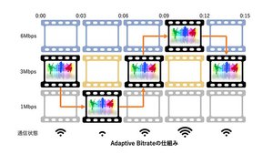 従来、Live Extremeを視聴するには15Mbps以上の高速インターネット環境が必要で、4G回線など低速なインターネット環境でも視聴できるようにしてほしいという要望が多くあったとコルグは説明。低速インターネット環境での視聴を実現する方法としては一般的にABRが用いられることが多いが、通常のABRではストリーミング・エンコーダー内で既に非可逆圧縮されている映像や音をストリーミング・サーバー内で再圧縮することになり、画質や音質が著しく劣化してしまうという問題点があったと指摘する。