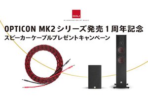 ディーアンドエムホールディングスは、同社が取り扱うDALIのスピーカー「OPTICON 6 MK2」「OPTICON 2 MK2」を購入することで、KIMBER KABLEのスピーカーケーブル「N4PR」をプレゼントするキャンペーンを実施する。購入対象期間は本日9月15日から2023年1月5日まで。