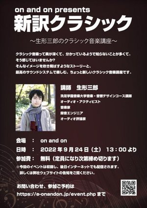 オーディオショップon and on、生形三郎氏を招いた音楽講座「新訳クラシック」を9/24に開催