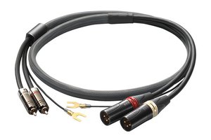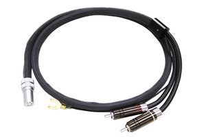 本モデルは、カートリッジの性能を100%引き出すため、導体に1.25Sqの極太PC-Triple C 線材を採用したバランス伝送型フォノケーブル。極太線材とPC-Triple Cの特徴である低歪率、高伝導率によって、微弱なカートリッジからの信号を損なうことなくフォノアンプへ伝送すると説明する。