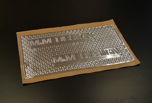 「SBM-500」は日本製の高比重・高耐熱性に優れたブチルゴムとアルミシートを組み合わせたダンピングマット。日本製高純度ブチルゴムを使うことで凸凹形状への追従性を向上。アルミシートの押し印により、強度向上と共振周波数を分散させ、ボディとの密着を高めることもできるとしている。熱にも強いためエンジンルームと車内との境界にあるバルクヘッド周辺にも施工が可能。