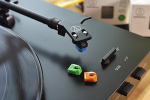 本体には、制振設計を施したアルミニウム合金ダイキャスト仕上げのプラッターとフェルトマットを採用。筐体内部にも金属プレートを配置して共振を抑制するとのこと。同社のVMカートリッジ「AT-VM95C」とヘッドシェル「AT-HS3BK」を付属。AT-VM95シリーズとの針先互換性があるため、好みの針に交換することも可能だ。