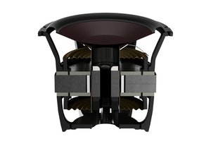 ウーファーは、11.5インチのユニット2基を約85cmの間隔で配置。この間隔を利用して、ディファレンシャル・フィルターによって垂直方向の拡散を制御し、リスニングポジションへの最適な音反射を実現するという。ダイヤフラムは高剛性かつ軽量を実現するために、ウッドファイバーで強化されたハニカムサンドイッチ・ペーパーパルプを採用。ドライバーは軽量の天然ゴム製のロールエッジでサポートされる。