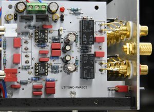 そのほかの部分は前モデルと同じで、アンプ部はオリジナル設計の完全ディスクリートで構成。電源部では電解コンデンサにニチコンの最上位“KGシリーズ”、トランスに320VAの大型のRコア・トランスを採用。電源部の整流にショットキーダイオードを使用するなどの特徴も引き継がれている。