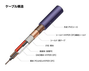 導体は全モデル共通で、PCUHD(高純度無酸素銅線)に純度99.99%/酸素含有量10ppm以下の無酸素銅線HYPER OFCを加えたハイブリッド導体を採用。周囲を覆う絶縁体やPVCシースには、独自のアニール処理「Heat Relieve(ヒートリリーブ)」を施すことで残留応力を除去し、情報量や分離感などを向上させたとする。