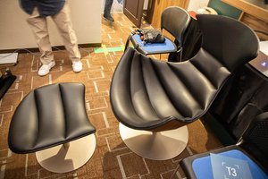 さらに、各地ですでに大きな話題となっている“オーディオ用椅子”「GamuT Hi-Fi Lobster Chair」も展示。実際に座ってみたが、お尻がすっぽり包み込まれるような絶妙なカーブ感が快適で、湾曲しているヘッド部分によるものなのか、音が耳までストレートに飛び込んでくるような心地よさが感じられた。