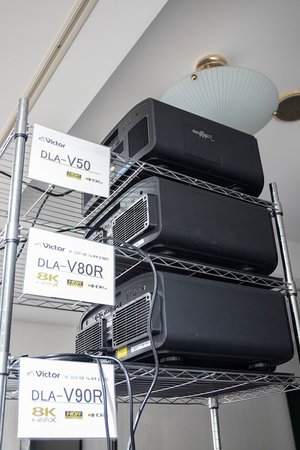 カトレアルームでは、同じくホームシアターのデモが行われていた。デンソーテンのECLIPSEシステムによる、トップまで含む本格サラウンドシステムを構築、JVCのプロジェクター「DLA-V90R」「DLA-V70R」「DLA-V50」の比較視聴なども行われていた。