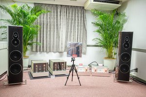 本館4Fの「あやめ」ルームは、フェーズメーションとCSポートという国産アナログブランドによるブース。フェーズメーションは211パラシングルによる大型のモノラルパワーアンプ「MA-5000」を大阪でも参考出品。MCカートリッジ「PP-5000」やパッシブアッテネーターの「CM-2200」などを中心に20周年記念モデルを紹介した。