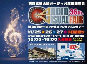 マックスオーディオが主催する西日本最大級のオーディオ展示即売会、「第36回オーディオ&ヴィジュアルフェアー」が、11月25日(金)から27日(日)の3日間にわたり開催される。会場はアジア太平洋インポートマート(福岡県北九州市)AIM 3Fの特設会場。入場は無料。