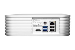 筐体はアルミ削り出しのトップパネルに、鏡面仕上げのステンレス鋼をボトムに採用。搭載端子はUSBオーディオ出力のUSB2.0のほか、ストレージ拡張用のUSB3.0/2.0を搭載。ネットワーク端子は1000BASE-Tに対応するRJ-45を搭載する。