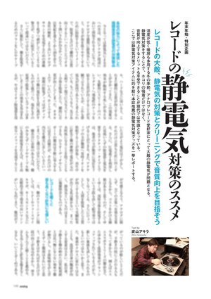 今号の特集として、年末年始に向けた特別企画「静電気対策のススメ」も掲載。湿度が低く暖房も多用する冬の季節。アナログレコード愛好家にとって大敵である静電気を気になさる方も多いのではないでしょうか。