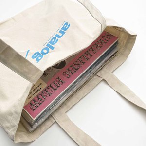 2015年に「季刊 analog誌」50号記念特別付録として制作された「特製アナログレコードバッグ」が、なんと8年ぶりに復刻!しっかりとした厚さのコットン生地で作成した船底タイプのシンプルなトート型レコードバッグです。レコードの持ち運びのみならず日常のお買い物用にもおすすめ。