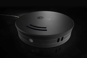 パーツ選定から配置に至るまで高速オーディオの送受信と超低ノイズ動作を追求、音楽再生のパフォーマンスを最優先に考慮して開発されたというネットワークスイッチ。筐体ボディはアルミニウムで、円盤の周囲に独立した5つのRJ-45ポートを配置する形状となっている。