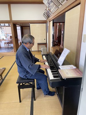 音楽寺の総代、原島久さんはピアノ演奏の趣味もあり、当日はご自身の作曲による演奏も披露してくれた。