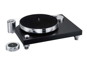プラッターや先端にスパイクを備えた3本の脚部には、上級モデル同様に肉抜きなしの重質量な無垢アルミ切削材を採用する。プラッターは35mm厚のアルミ削り出し(質量約7kg)で、表面はドイツの職人の手によって丁寧な鏡面磨きが施される。