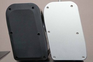 オーバル・ラウンドフォルムデザインを採用した、オールアルミ製のエンクロージャーを採用し、底面にネオフェード・カーボンマトリックス3層材を使用したインシュレーターを導入する。外形寸法は、109W×159.5H×203.4Dmm、質量は約2kg(右)と約1.9kg(左)。