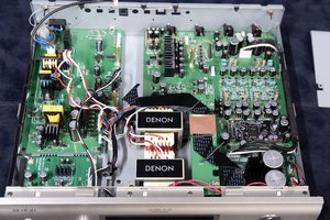 電源トランスにはDNP-2500NEで実績のある高出力EIコアトランスをベースに、本機にあわせてカスタマイズした専用品をデジタル/アナログ回路で1つずつ、計2個搭載。トランス部分からデジタル/アナログ回路を完全に独立させ、相互干渉とノイズの回り込みを防いでおり、トランスは強固なスチール製トランスベースを介してシャーシに取り付けることで、周辺回路に不要な振動が伝わらないようにしてある。