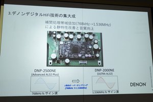 なお、前モデルのDNP-2500NEは最大768kHzだったため、オーバーサンプリング比は2倍となっており、これで理論上S/Nを-3dB改善できたとのこと。
