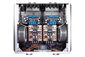 出力段には、M-3で採用したキャンタイプ・バイポーラトランジスタによるシングルプッシュプルSEPP回路を搭載。幅広い帯域で滲みのない再生が可能としている。ドライバーとプリドライバーには強力なTO3タイプ トランジスタを採用し、ボトムエンドまでの電力供給を完璧にすることで、深い表現力とグルーヴ感を両立したという。
