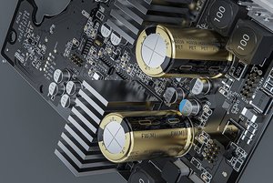 これによりウーファーに30W、トゥイーターに10Wのドライブ力を提供。相互変調歪みの低減や、オーバーロードの回避や電力効率の大幅な向上を実現したと説明する。また、100Wの電源供給能力を備える電源回路には、ニチコン製の4,700uf大型コンデンサーを2個採用することで、アンプ回路へのクリーンで安定した電源供給を可能にし、コンパクトな筐体ながらも高いスケール感とドライブ力を実現したという。