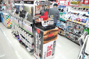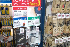 ビックカメラ有楽町店のオーディオコーナーでも、存在感を放ちひと際目につくのが、通路に沿って展開するレコードプレーヤーコーナーだ。約30台もの製品がズラリと並び、目的とする商品をお客様自身でもある程度目星が付けられるよう、グレードや機能をわかりやすくPOPを付けて解説している。