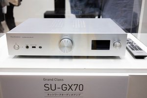 テクニクスは、先日発表になったHDMI搭載のネットワークオーディオアンプ「SU-GX70」を中心に、アナログプレーヤーからCDプレーヤー、スピーカーシステムまで、テクニクスの総合力を示すオーディオ製品を展示している。