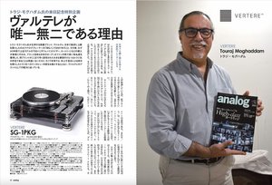 ほかにも、オーディオ評論家の小原由夫氏が、新しいアナログプレーヤーを新規導入したワケをたっぷり語ります。また若手指揮者である坂入健司郎氏、オーディオテクニカのカートリッジ部門 チーフエンジニア・小泉洋介氏、ヴァルテレの主宰者トラジ・モグハダム氏のインタビューなど、たくさんのアナログに関わるキーパーソンが登場します。