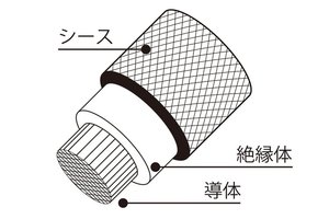 「Clone2Y6」は、高純度6NCuを中心に、高機能純銅線HiFC、高純度無酸素動線PCUHD、高純度無酸素銅OFCの4種類の素材を独自構成でハイブリッドした導体を採用。絶縁体はポリ塩化ビニル、シースはポリエチレンテレフタレートによる編組チューブ。こちらも片側がM6のY端子、もう片方がM4のY端子となっている。
