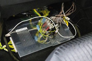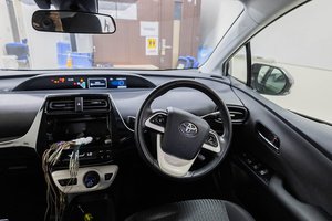 デモカーにはトヨタのプリウスを使用。AK7709はオーディオICであると同時に、ソフトウェアを書き込むことでさまざまな音質的な追い込みが可能となっている。今回の試聴では、プリウスの純正スピーカーそのまま(ダッシュボード上と前後ドアの合計6箇所)を使用、DSP、DAC、そしてアンプについて、旭化成エレクトロニクスが用意した「サウンドデザインボード」が活用されている。