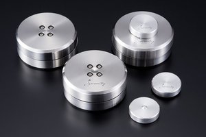 インシュレーター本体はSUS304のステンレス、中間ベースにはAZ31のマグネシウム合金を採用している。またスパイクもAZ31マグネシウムとなっている。本体サイズは84φ×34Hmmで質量は930g。スパイクのサイズは39φ×2.5Hmmで、質量は21g。