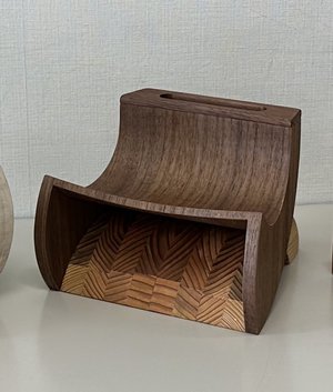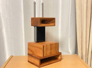 グランプリ受賞は、福井県越前市の山口祐弘さんの作品。サイコロ状のケヤキを3段に積み重ねたもので、高さは約20cmほど。特にデザインの良さや発想のユニーク度が高く評価された(以下キャプションは審査委員長を務めたオーディオスペースコアの筏 隆市氏のコメント)。