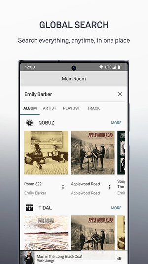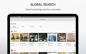 基本的な機能はiOS版と共通。アーティストビューでは、アーティストのバイオグラフィやアルバム、トラックなどがスクロールで表示される。またグローバルサーチに対応しており、ストリーミングサービスとローカルの音楽ファイルを一元的に検索・再生することができる。