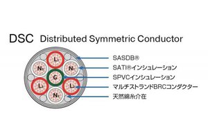 「ULTIMATE DSC」シリーズは、同社の特許技術である「DSC」(Distributed Symmetric Conductor)構造を採用したケーブル。導体はマルチストランドBRC(Balanced Refinement Copper)で、絶縁体はいずれも特許技術であるSATI(Semi-Air Tape Insulation)にSASDB(Semi-Air-Spaced Dielectric Binding)を採用。介在は天然綿糸。DSC構造によって、通常の導体と比較して「優れた群速度、優れたEMI耐性ならびにノイズリダクションを実現する」としている。