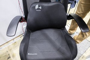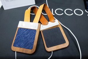 QUICCO SOUNDは浜松のメーカーで、“耳を塞がない” フローティングヘッドホンを展示。ヘッドバンドを頭に乗せ、イヤーパッドにあたる部分を両耳側にぶら下げるようにして試聴する。平面磁界型振動板を採用しており、1cm程度の薄いイヤーパッドだがかなりしっかりした音質が実現されていることに驚く。「平面振動板ですので、高域から低域までフラットに再生できることが特徴です。いま展示しているのは有線モデルですが、Bluetoothモジュールを組み込んでワイヤレスにすることも簡単に実現できます」とのこと。