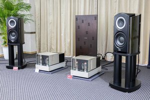 協同電子エンジニアリングのブースでは、Phasemationブランドのフラグシップとなる真空管モノラルパワーアンプ「MA-5000」をTADの「TAD-CR1TX」とデモ。「MA-5000」はすでに海外の代理店からも引き合いが来ているようで、日本のオーディオブランドの開発力の高さに世界も注目しているようだ。