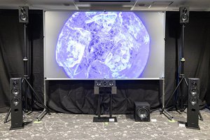 ソニーのブースでは、プロジェクター「VPL-XW7000」「VPL-XW5000」と、AVアンプ「STR-AN1000」を中心に、5.1.2chのサラウンド環境をセット。