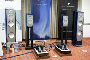 オーロラサウンドは、PDN・アナログリラックスと共同出展。Paradigmの「Persona B」「Persona 7F」をメインスピーカーに、アナログやネットワークオーディオなどさまざまに聴き比べができるようになっている。