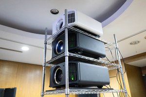 スクリーンにはエリートスクリーンのグレー系生地のスクリーンを組み合わせており、「明るいリビングの環境下でもしっかり色再現が可能」なことをアピールする。なかなかホームシアターの専用室を設けることは難しいため、家族が集まるリビングでも良質な映画やゲームなどが体験できるシステムとして提案しているという。