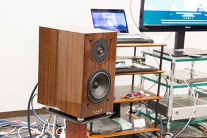 KRIPTONは、同社の2ウェイ密閉型スピーカー「KX-0.5II」「KX-3SX」の聴き比べを実施。いずれもウーファーユニットにクルトミュラーコーン紙を使用しており、ユニットから自社設計しているからこそ実現できるスピーカー制作のこだわりをアピール。