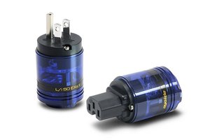 電源プラグ・コネクターはすべて本機専用の部材を使用して設計。オーディオ用電源プラグ・コネクター「ARMOREDシリーズ」をベースに、サファイアブルー仕様の「AP-037EX」「AC-037EX」を採用している。