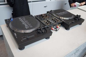 Technics café KYOTOでは、常設のオーディオシステムによりアナログレコードを中心とした試聴が行える。ダイレクトドライブターンテーブル「SL-1000R」、SACD/ネットワークプレーヤー「SL-G700M2」、プリメインアンプ「SU-R1000」、スピーカー「SB-R1」という布陣だ。またDJターンテーブル「SL-1200MK7」も設置される。