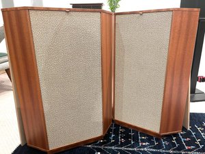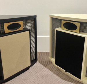 デザインは、ヴィンテージスピーカーの銘機と言われるTANNOY GRFやJBL Hartsfield(ハーツフィールド)、Tru-sonic EAMS(イームズ)などから着想を得て製作したもの。ユニットはヴィンテージのものを使用しながら、キャビネットを響きがよく強度の高いフィランドバーチ材で新設計。内部には吸音材を施し、ユニットとのバランスを見ながら何度も音を聴いて音色を調整している。
