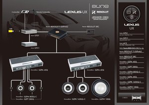 新たにユーロリンクアップショップの協賛メーカーに加わったイース・コーポレーションは、ブルーの「LEXUS UX」に、新たに取り扱いを開始したaune audioのミュージックプレーヤーを装着した車を出展。DSPにはRESOLUT、GroundZeropのパワーアンプ/スピーカーと同社の主力製品を体験することができる。