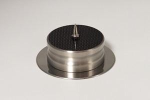 スタビライザー中央に円錐状のパーツを置くことでレコード盤の静電気を空中に放出。スピンドル穴が入る部分に絶縁体を組み込み、さらに内径を大きくすることで、アナログプレーヤーとの電気的な接触を回避する仕組みとなっている。